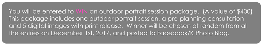 And the winner of the K Photo and Design Outdoor Portrait Package goes to……….